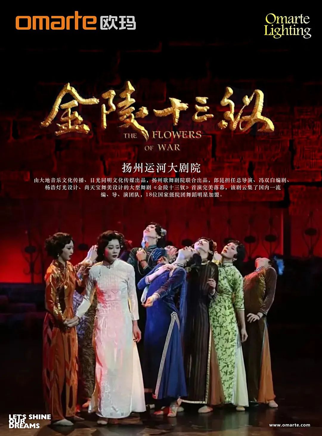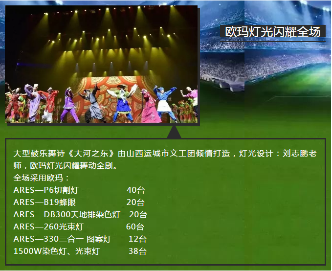 該劇以創(chuàng)作舞臺(tái)精品為定位,本次演出采用了歐瑪燈光1500W染色燈OA3800WASH、1500W圖案燈OA3800SPOT 、三合一電腦燈MOORE330BEAM 、搖頭天地排LED300兩百多臺(tái)高品質(zhì)燈具。