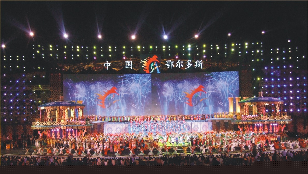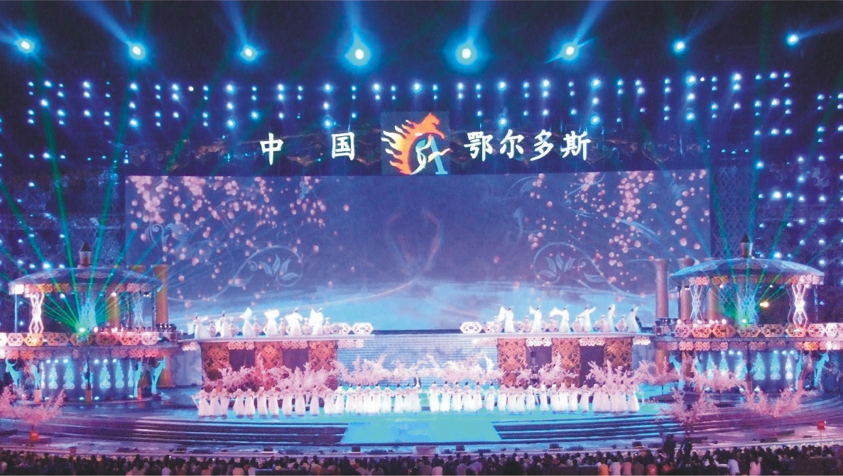 “吉祥草原祝福亞洲”第十一屆亞洲藝術(shù)節(jié)開幕式晚會于2009年8月18號晚在鄂爾多斯東勝演藝廣場舉行。本次亞洲藝術(shù)節(jié)開幕式舞臺主體用鋼管搭建而成,臺面有升降臺、有可旋轉(zhuǎn)舞臺。舞臺兩側(cè)各有一個蒙古包,距離地面5.5米高,而連接蒙古包和升降臺的,是兩個像鐘表一樣的移動平臺。舞臺主要的色調(diào)則是以藍色和黃色為主,整個舞臺讓人覺得氣勢恢宏而又不失靈秀。變幻無窮的燈光效果、滿天煙花焰火的幻彩、精彩紛呈的文藝表演。晚會結(jié)合現(xiàn)場演出調(diào)動多種大型舞臺表現(xiàn)手段,實現(xiàn)音、舞、畫的和諧之美,達到唯一性、震撼性、民族性、視覺性的高度統(tǒng)一。共迎文化盛會共享文化盛宴。祝我們的祖國明天更美好!