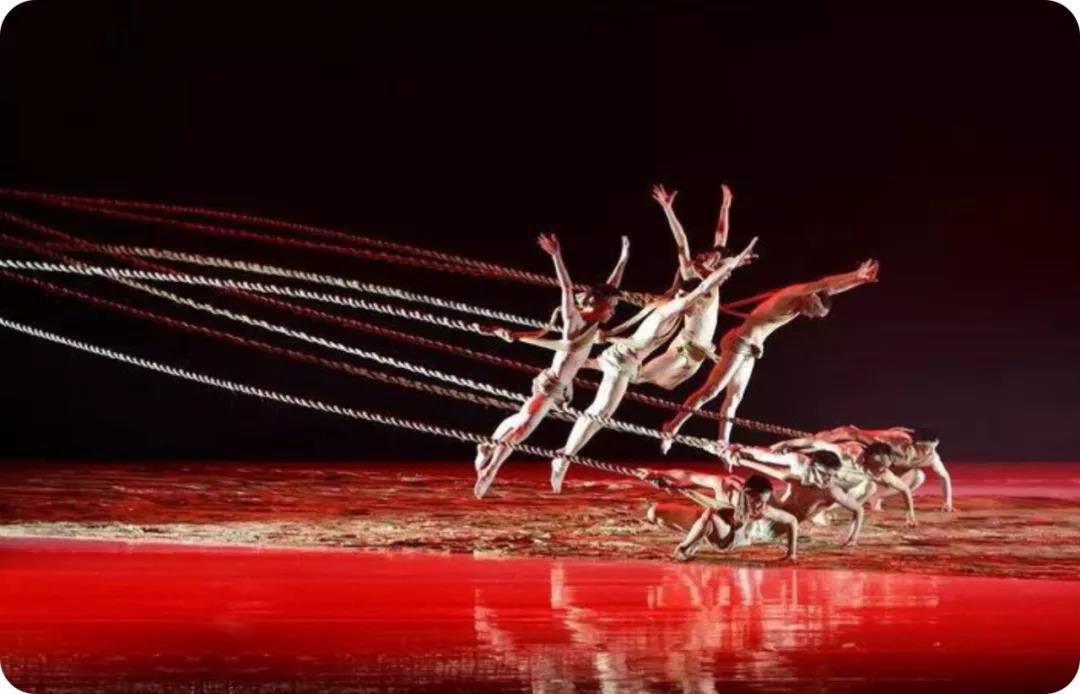 這是中國(guó)舞蹈史上一次前所未有的震撼演出,《黃河》突破界限,創(chuàng)造了大不同的舞蹈世界。它所呈現(xiàn)的舞臺(tái)藝術(shù)的表現(xiàn)方式,其實(shí)早已超出了觀賞的范疇,而是帶給觀眾沉浸式的感受。令人驚訝的是,整場(chǎng)演出沒(méi)有借助LED屏、全息投影等高科技手段來(lái)呈現(xiàn)視效,除了串場(chǎng)的動(dòng)感紗幕,演出全部依托人力完成,色彩的烘托加上演員的肢體語(yǔ)言極致地表達(dá),真正做到了——回歸舞蹈本體!