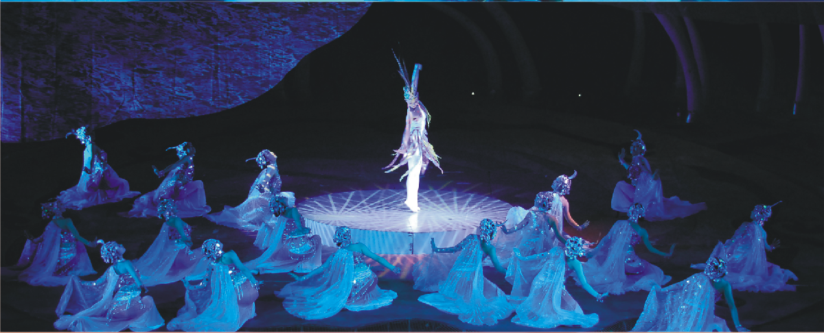 大型音樂舞蹈《太陽神鳥》是一臺(tái)詮釋千年珍寶深刻內(nèi)涵的舞臺(tái)藝術(shù)力作,舞美燈光設(shè)計(jì)充滿神秘色彩,