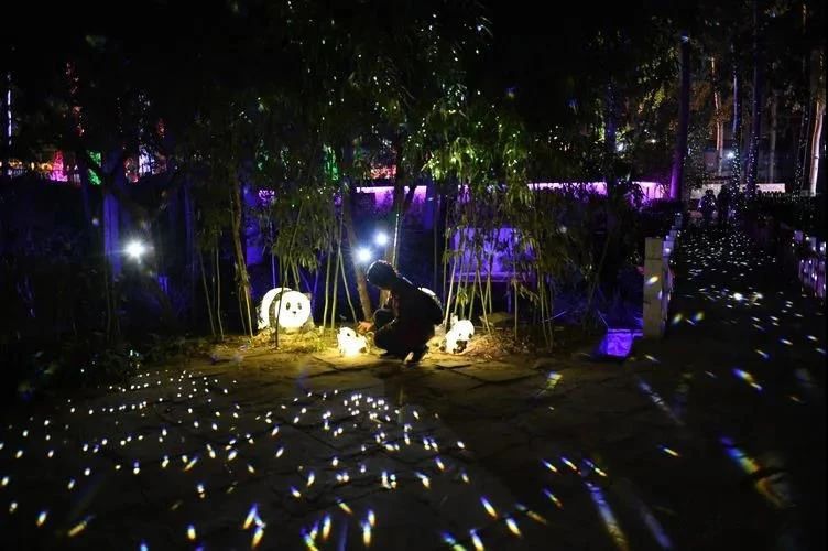 金寶星夜的螢火蟲(chóng)景觀,你可伸手觸摸藏身花草樹(shù)木中的螢火蟲(chóng),亦可追逐飛舞的螢火蟲(chóng),來(lái)一個(gè)零距離親密接觸,感受螢火流光飛揚(yáng)的奇幻和浪漫。閃閃發(fā)光的螢火蟲(chóng),與星光熠熠的夜空,交相輝映,猶如滿天星河在你身邊流淌,如夢(mèng)如幻;大型地面互動(dòng),你可以踏花而行,看五彩斑斕的鮮花在夜晚里燦爛綻放,每棵樹(shù)上的光遇到觀賞者接近通過(guò)時(shí),光芒的顏色會(huì)產(chǎn)生變化并且發(fā)出特別的音色;進(jìn)入時(shí)空隧道仿佛走進(jìn)了一個(gè)夢(mèng)幻的王國(guó),而我們就是這個(gè)童話世界里的人,精神一下子開(kāi)始變得愉悅起來(lái)。