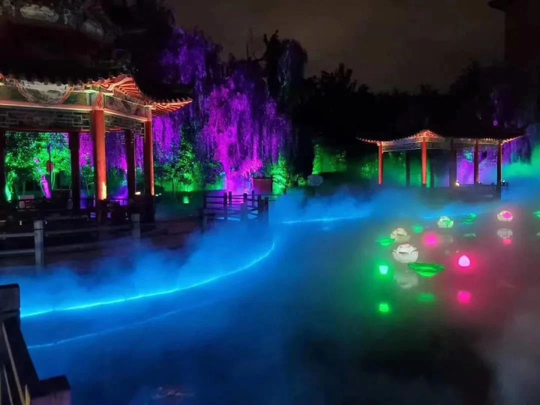 金寶樂(lè)園夜游項(xiàng)目使用了歐瑪文旅防水系列水紋燈、投影燈、螢火蟲(chóng)燈等2000多臺(tái)。