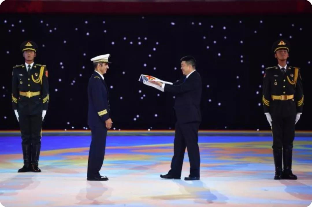 結(jié)束意味著又一新篇章的開(kāi)始。在渾厚的音樂(lè)聲中,國(guó)際軍事體育理事會(huì)會(huì)旗緩緩降下,被移交到國(guó)際軍體主席赫爾維·皮奇里洛手中。