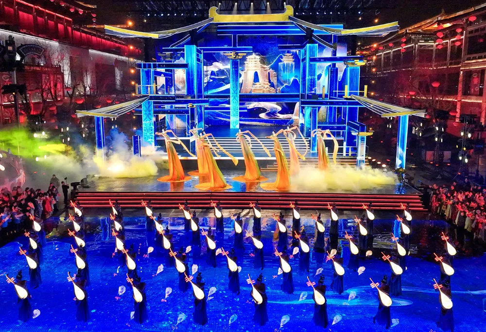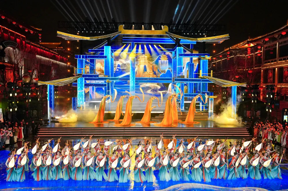 2月9日晚8點(diǎn),中央廣播電視總臺(tái)《2024年春節(jié)聯(lián)歡晚會(huì)》盛大開(kāi)播,遼寧沈陽(yáng)、湖南長(zhǎng)沙、陜西西安、新疆喀什四個(gè)分會(huì)場(chǎng)各具特色的舞臺(tái)設(shè)計(jì)和節(jié)目與主會(huì)場(chǎng)的合練中銜接流暢、一氣呵成,渾然一體。春晚西安分會(huì)場(chǎng)上《山河詩(shī)長(zhǎng)安》讓人眼前一亮。通過(guò)增強(qiáng)現(xiàn)實(shí)(AR)技術(shù),讓李白跨越時(shí)空、乘鶴而來(lái)、飲酒對(duì)詩(shī)、觀今日西安,并以此刻畫(huà)出中國(guó)文化極致的浪漫與溫情。除了精彩的節(jié)目,多變立體深入融合中國(guó)傳統(tǒng)文化的燈光設(shè)計(jì)更是讓人記憶猶新印象深刻——它與繁華街景、人流樓宇融為一體,映亮長(zhǎng)安城中火樹(shù)銀花不夜天