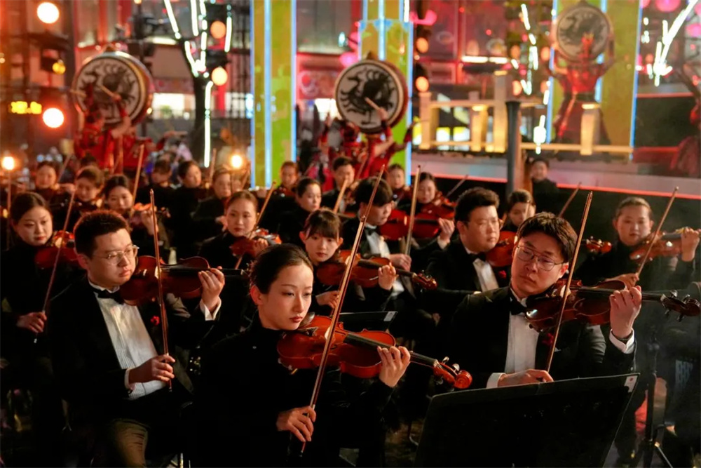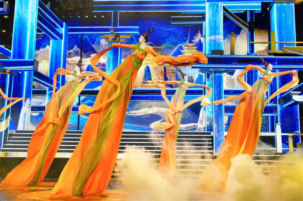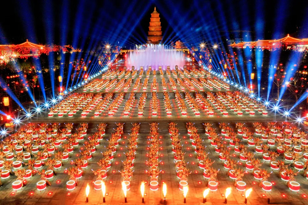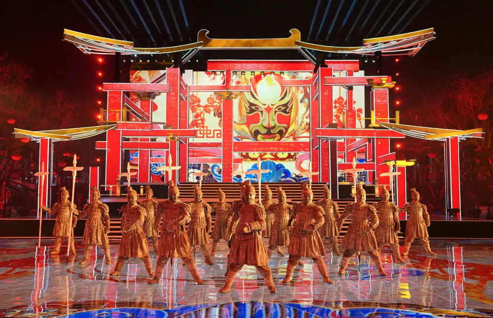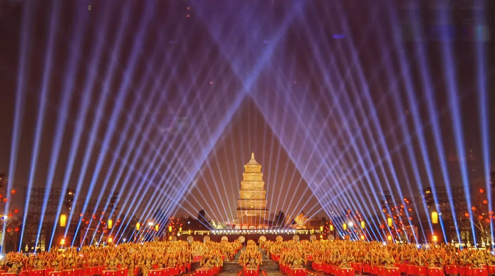 華燈初上,古城的歷史沉淀在每一處細(xì)節(jié)里,仿佛一幅幅活生生的畫(huà)卷展現(xiàn)在觀眾眼前。燈光和音效的交織和呼應(yīng),使人感覺(jué)仿佛穿越了時(shí)空,體驗(yàn)到了西安的吸引力和包容性。在這個(gè)備受矚目的夜晚,西安分會(huì)場(chǎng)憑借其深厚的歷史背景和文化底蘊(yùn),為觀眾呈現(xiàn)了一次空前絕后的視覺(jué)體驗(yàn)。