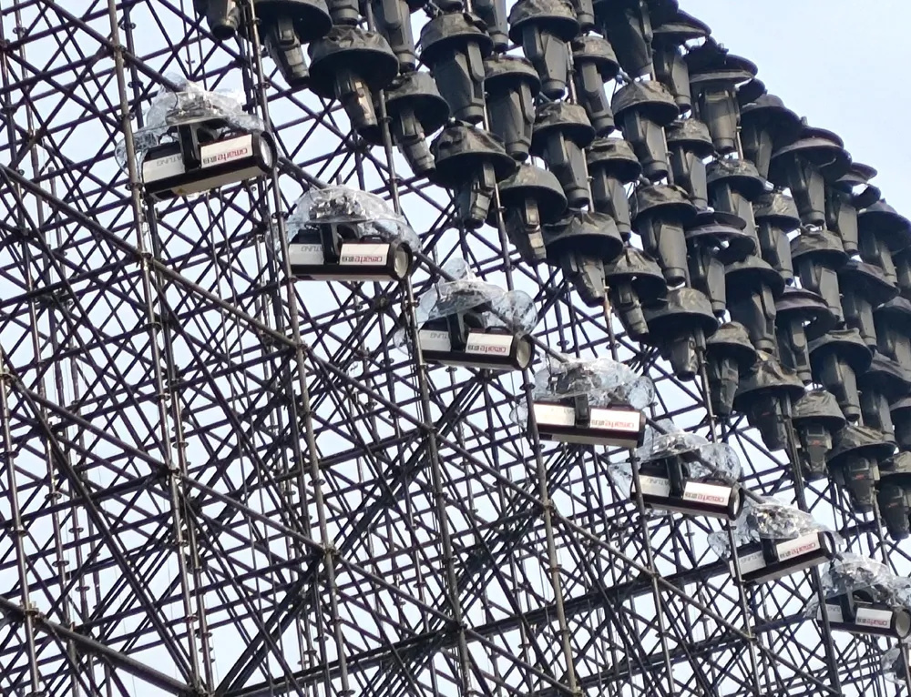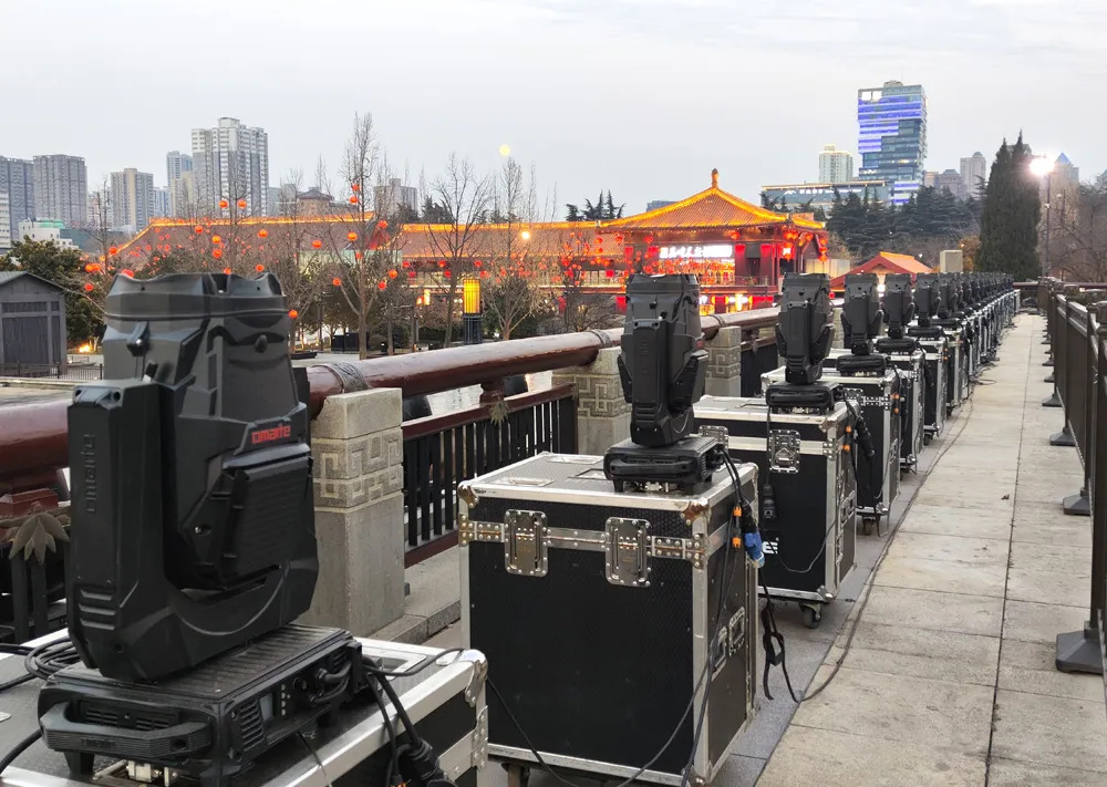 防水光束燈(Seer-F450C) 500臺(tái);搖頭追光 (Gatling1400) 30臺(tái);防水切割燈(Ares-FP2400H) 200臺(tái);防水搖頭染色燈(Eos-F1000300臺(tái)。