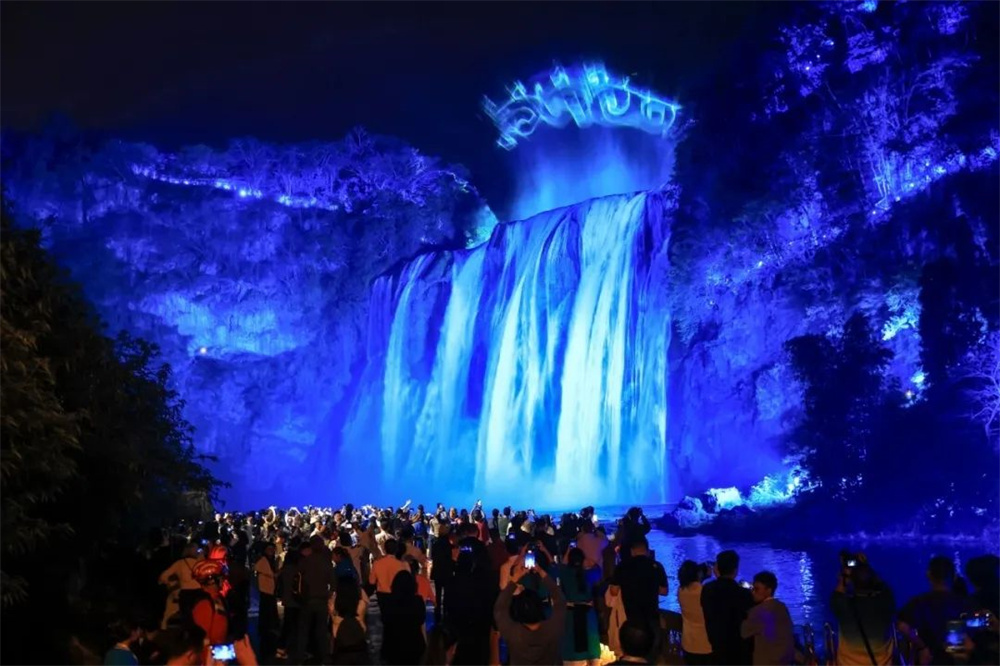 夜幕降臨,星河傾瀉,黃果樹大瀑布景區(qū)的陡坡塘瀑布褪去白晝的喧囂,化身為一場(chǎng)跨越時(shí)空的奇幻夢(mèng)境。
