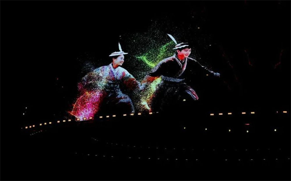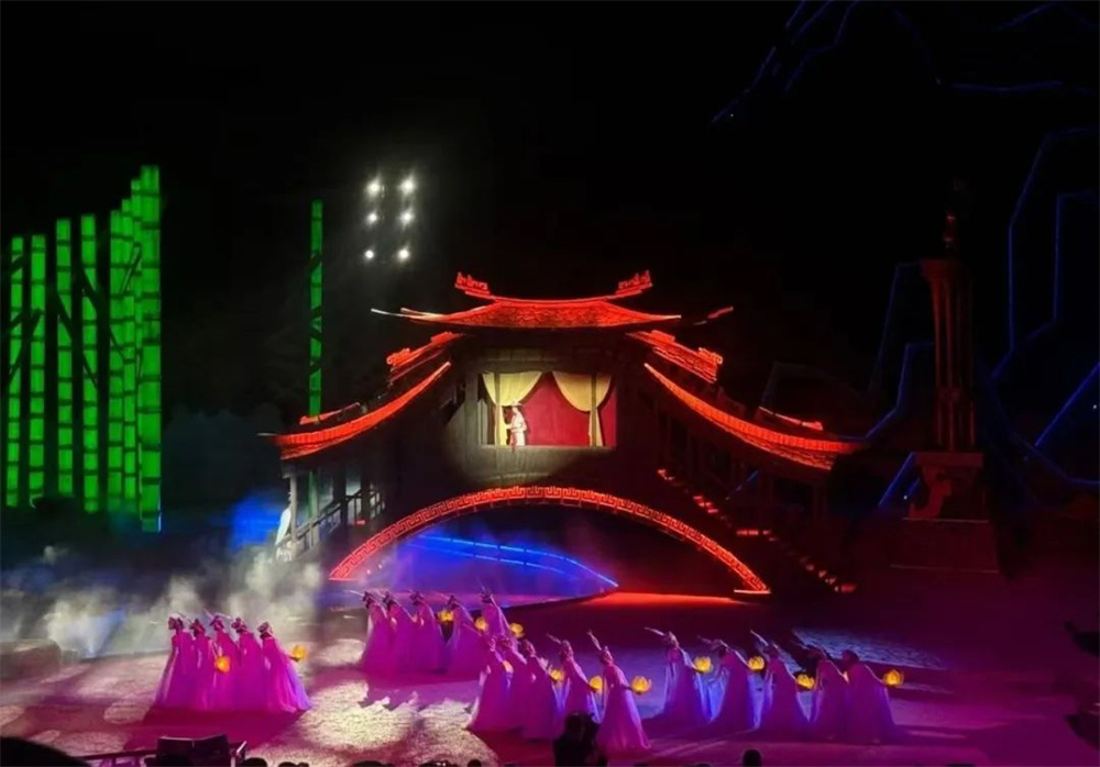 歐瑪燈光設(shè)備的卓越性能,完美實現(xiàn)了"移步換景"的沉浸式觀演體驗。當(dāng)觀眾置身旋轉(zhuǎn)席間,燈光與山水實景交相輝映,傳統(tǒng)"舞臺"概念被徹底消解,取而代之的是"人在畫中行,劇在身邊生"的實景體驗。燈光與音樂的精準(zhǔn)配合,更創(chuàng)造出"一鏡到底"的全景感官沖擊。