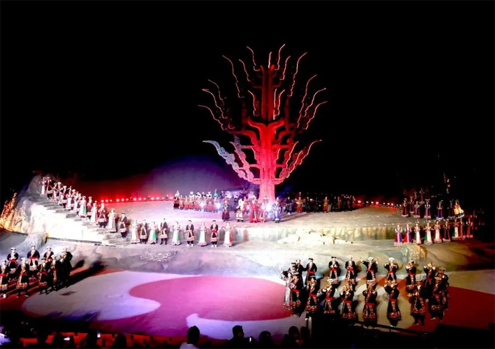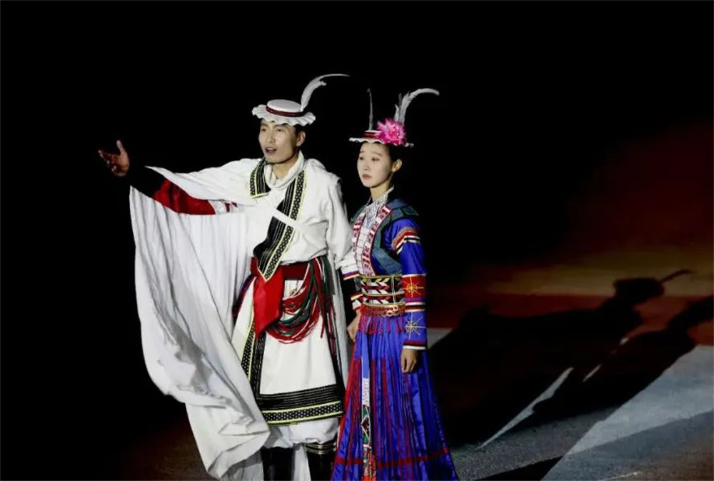 文縣鐵樓藏族鄉(xiāng)作為白馬人聚集地,素有"中國白馬人民俗文化之鄉(xiāng)"的美譽。此次《白馬盛典》以國家級非遺白馬人英雄史詩《阿尼嘎薩》為敘事主線,創(chuàng)新性地將白馬人的傳說故事、民俗風(fēng)情、非遺傳統(tǒng)等元素進行藝術(shù)重構(gòu),打造出一臺震撼人心的文化大戲。