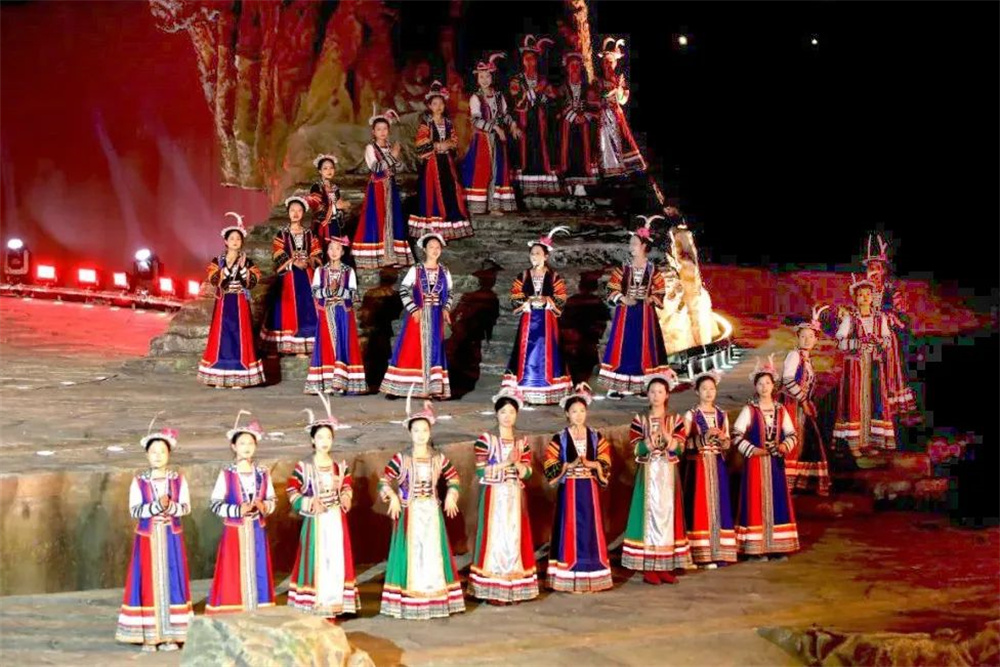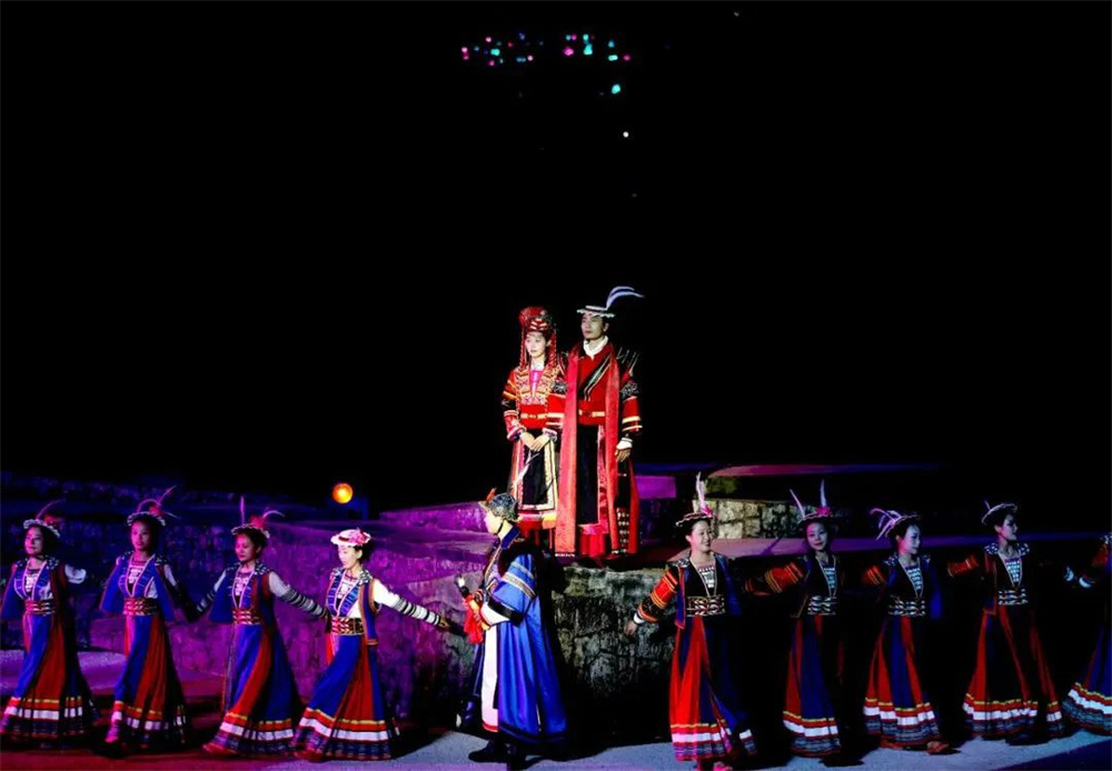 在歐瑪燈光絢麗多彩的加持下,白馬人的非遺文化得到前所未有的生動呈現(xiàn):
