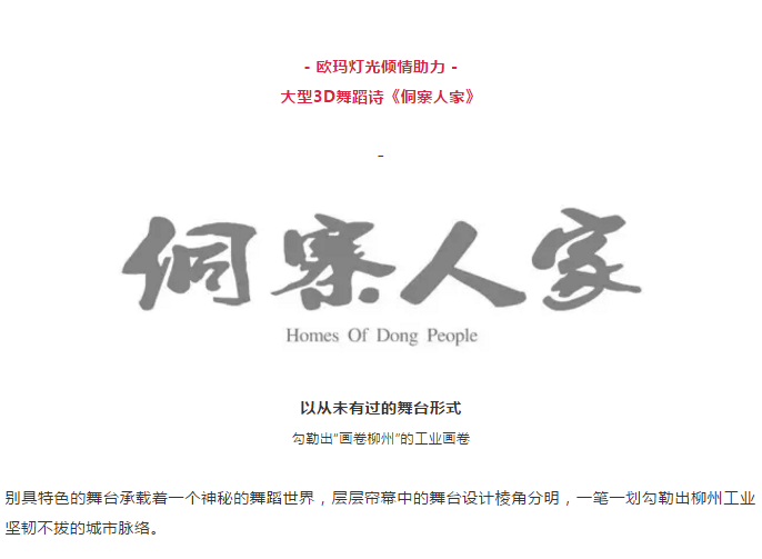 走過(guò)“陽(yáng)春”、“清夏”、“三秋”、“九冬”四季,穿越時(shí)空看踩堂,千年的踩堂沉淀為柳州厚重歷史中濃墨重彩的一頁(yè)。3D舞蹈詩(shī)《侗寨人家》以單純和一致的結(jié)構(gòu)元素貫穿古今,聚焦于侗族人民的內(nèi)心縱深,展示了侗族人民追求和諧幸福生活的精神面貌,更象征著一個(gè)民族的偉大復(fù)興!