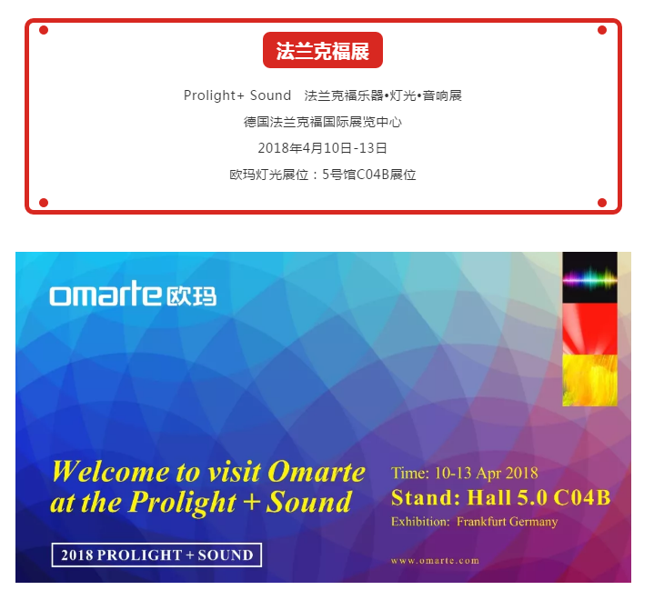 2018年4月10日,德國法蘭克福國際燈光及音響技術展覽會(Prolight+Sound)如期而至。歐瑪燈光此次參展,為全球客商展示了多款歐瑪燈光旗艦系列產(chǎn)品,包括:600wLED切割燈(Ares-P6)、450wLED全防水光束燈(Ares-B5),200wLED圖案燈(Ares-S2), 19顆40wLED蜂眼染色燈(Eos-B19)、4顆60wLED電腦燈(Eos-B4),、7顆60wLED電腦燈(Eos-B7)、 小追光RPG8等,其中4顆60W和7顆60W 精致簡約的設計,出色的線形調(diào)光效果,深受歐洲客戶喜愛,更有客戶現(xiàn)場就已經(jīng)下單的!