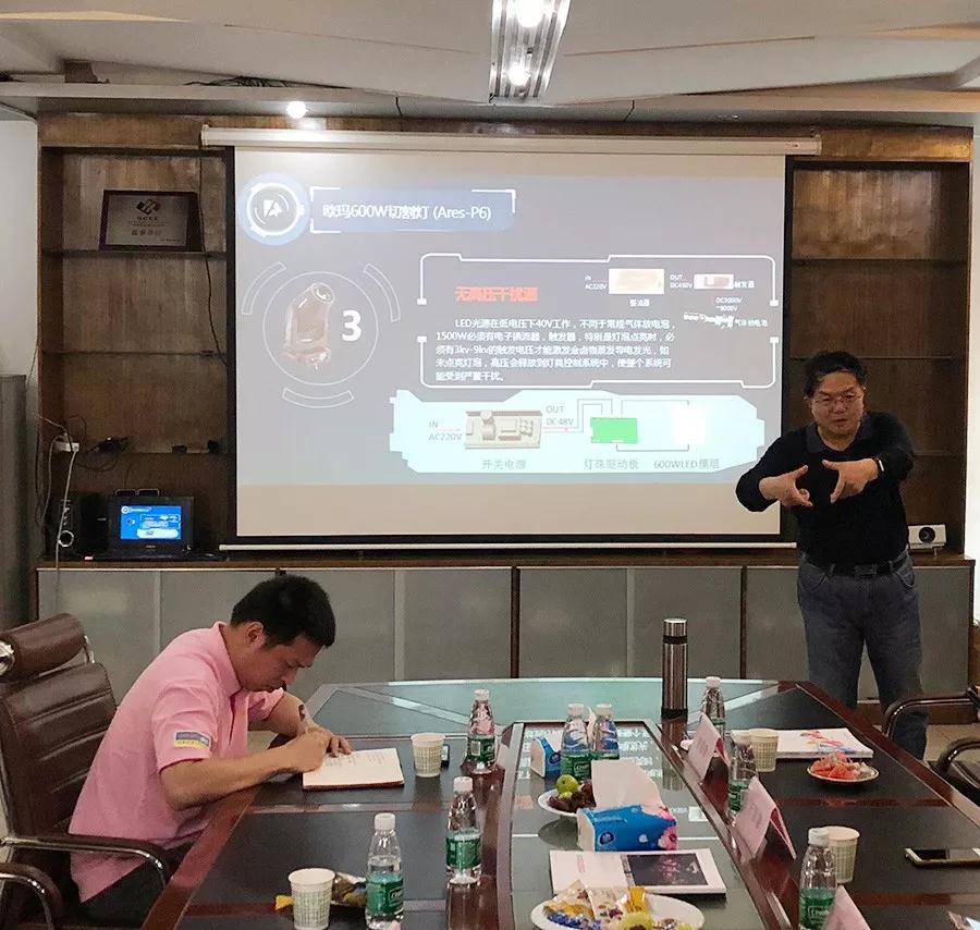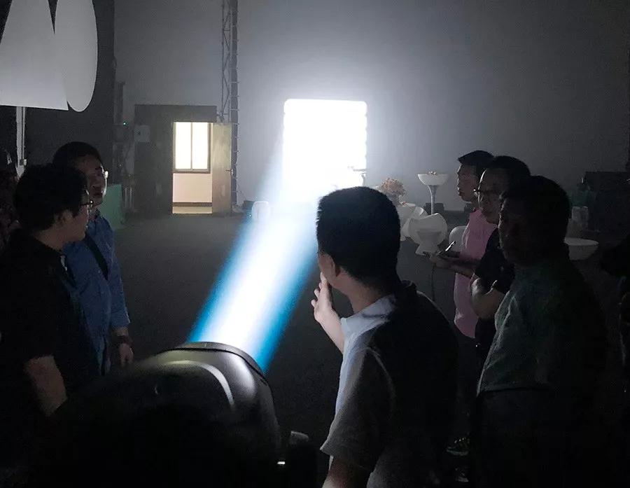 隨后,華總向調(diào)研專家組成員著重介紹了歐瑪燈光全系列LED產(chǎn)品,包括:LED600w切割燈(Ares-P6)、LED染色燈(Leo-BD30)、LED450w光束燈(Ares-B5),LED450w三合一圖案燈(Ares-S5),19顆LED蜂眼染色燈(Eos-B19),7顆LED搖頭染色燈(Eos-B7)。通過現(xiàn)場演示操作和數(shù)據(jù)測量等方式,專家組成員全面考察了歐瑪燈光產(chǎn)品與技術(shù)的先進(jìn)性,并與歐瑪燈光技術(shù)人員展開熱烈的討論并進(jìn)行深入交流。專家組對歐瑪燈光新產(chǎn)品、新技術(shù)給予了肯定,并提出了一些建議,希望歐瑪燈光的產(chǎn)品能越做越好。