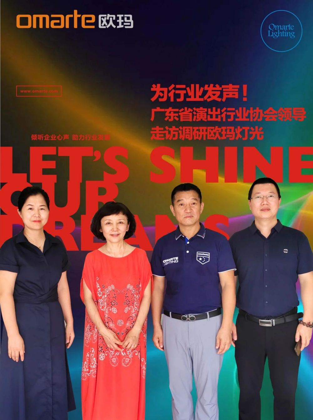 6月23日上午,廣東省演出行業(yè)協(xié)會會長劉瑩,秘書處副秘書長王海兵、秘書蘇小鳳陪同下一行到廣州市歐瑪燈光設(shè)備有限公司走訪調(diào)研