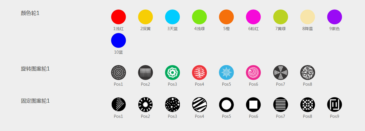 · 1個(gè)旋轉(zhuǎn)圖案盤:8個(gè)插拔式的旋轉(zhuǎn)圖案片+白圓;