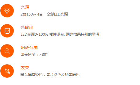·?類型: 2顆150w 4合一全彩LED光源。
