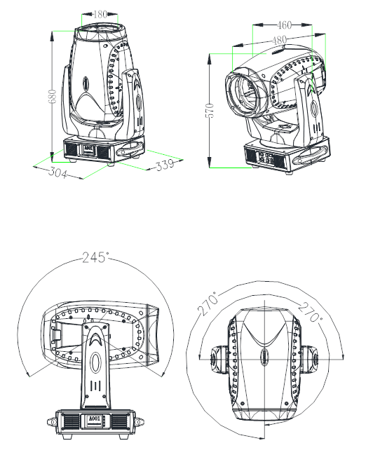 · DMX 信號連接: 3芯 或者5 芯XLR 輸入和輸出。